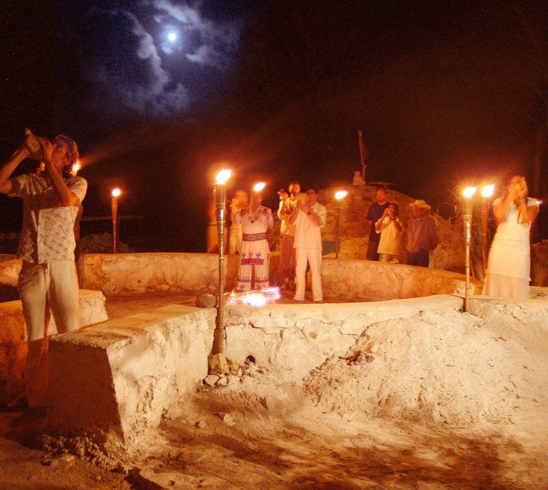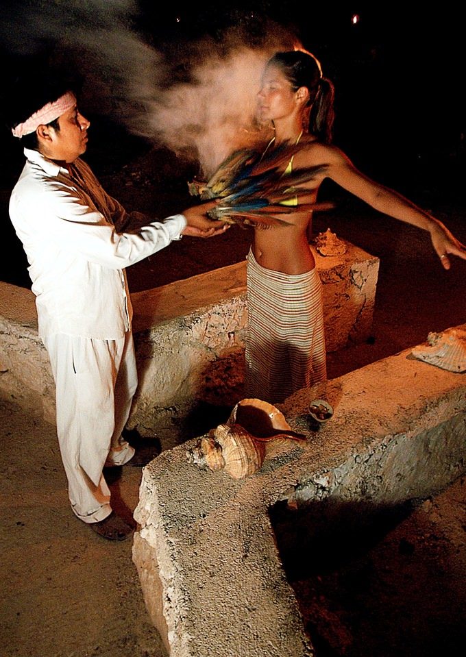 В темаскаль занесут горячие камни, закроют дверь и церемония начнется. Шаман будет поливать камни водой, в которой настояны различные лекарственные травы, петь древние песни под аккомпанемент бубна и других музыкальных инструментов. Мы будем работать со своим дыханием, энергией, мыслями. Очень важно понимать, что человек, который ведет церемонию, всего лишь проводник, а работу по своему исцелению Вы должны выполнить сами. После четырех «дверей», посвященных четырем стихиям, мы будем выходить из темаскаля в буквальном смысле заново родившимися. Заключительной частью вечера станет купание в сеноте – священном карстовом озере и легкий ужин с особым чаем и фруктами.