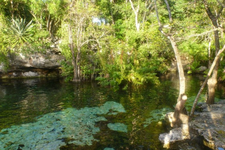 В вечнозеленых джунгях на пути между Кобой и Тулумом рассыпаны словно драгоценные камни сокровища джунглей – сеноты – это карстовые озера с кристалльно чистой голубой водой. Сеноты являются частью огромной системы подземных рек, протяженностью более 300 километров. Если нырнуть в сенот с маской можно увидеть как в глубь уходят темные проходы пещер со сталактитами и сталагмитами. В одном из этих удивительных по красоте мест мы сделаем остановку на купание.